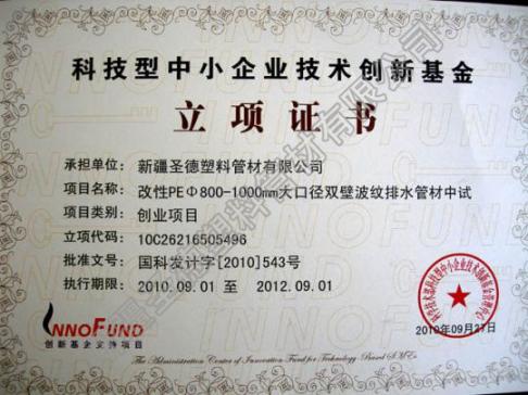 科技型中小企业技术创新立项证书