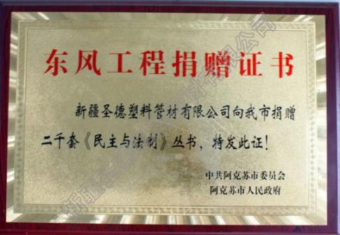 东风工程捐赠证书