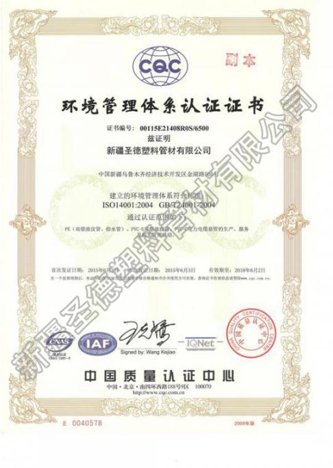 环境管理体系认证证书